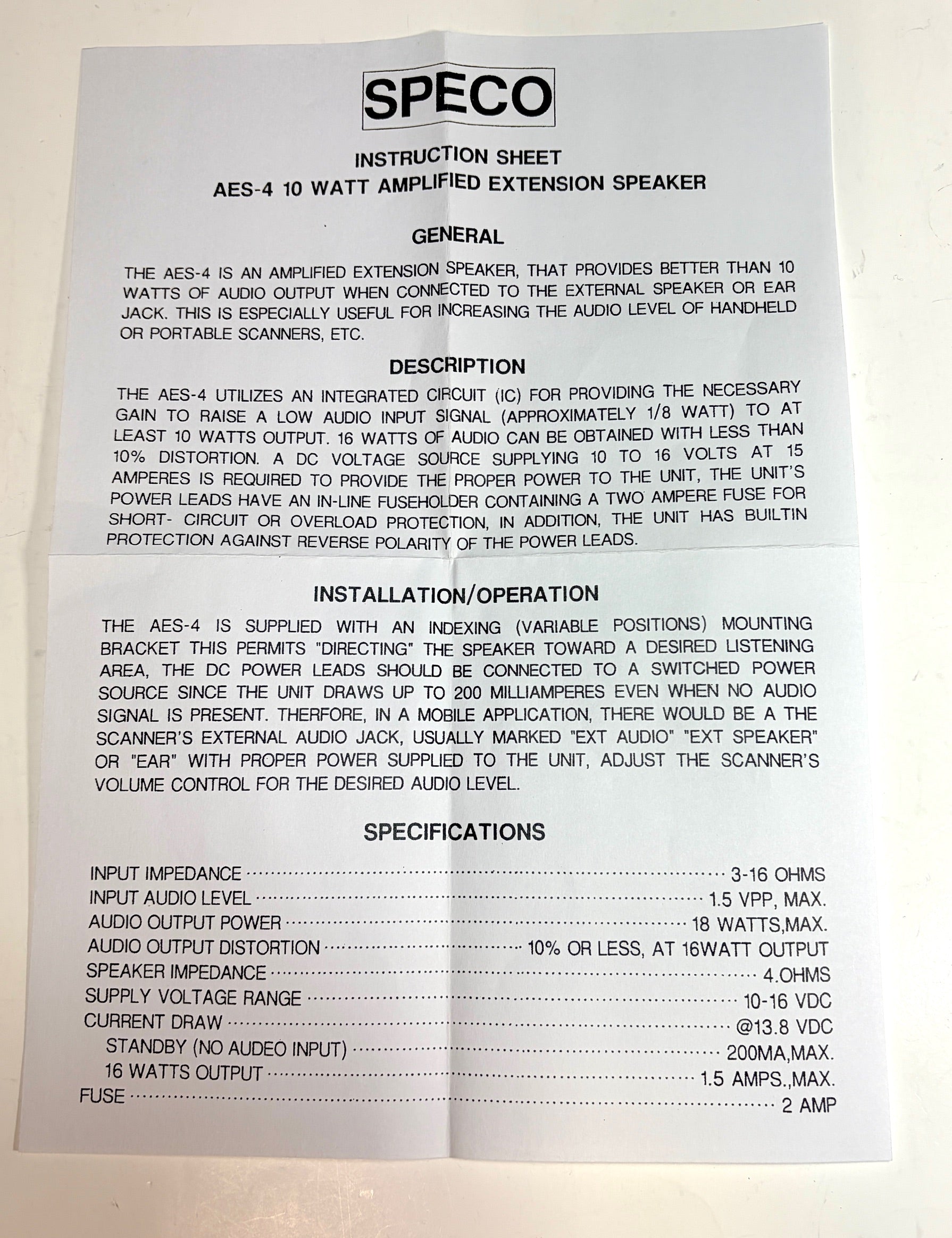 SPECO AES4 AMPLIFIED EXTENSION SPEAKER